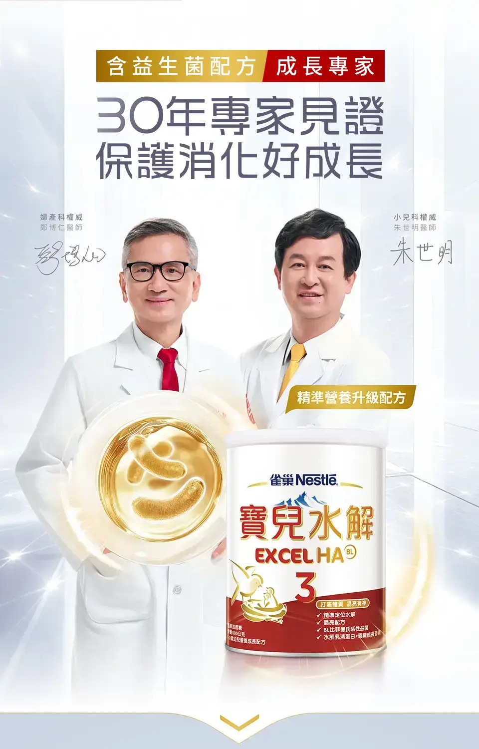 我是兒科醫師,我推薦雀巢寶兒水解3,精準營養為寶寶健康打底。寶兒水解3專利精準水解胜肽科技,搭配獨特BL活益菌CNCM I-3446 啟動健康循環,為寶寶扎根健康20年!